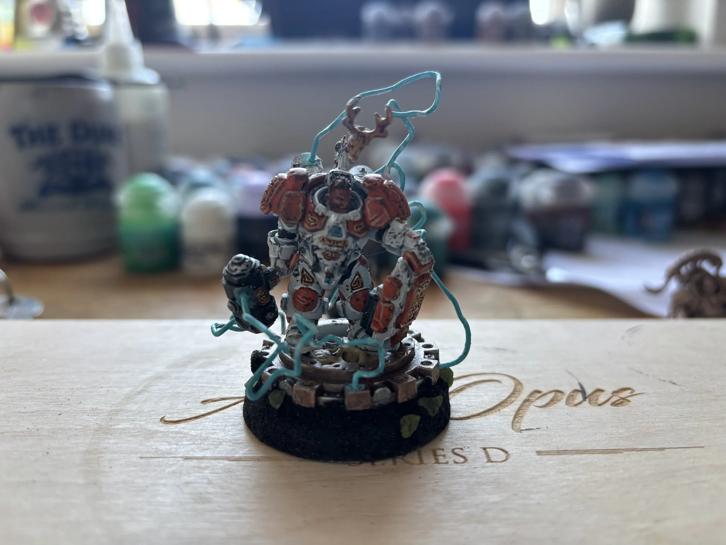 Moktar was not born — she was built. The first Einhyr plate ever assembled in Vôrun-Hold was made for her, pieced together from salvaged Urani-Surtr Regulate patterns aboard the great vessel Örgvayr’s Echo, after the Kindreds fled the warp-storm Örgvayr.