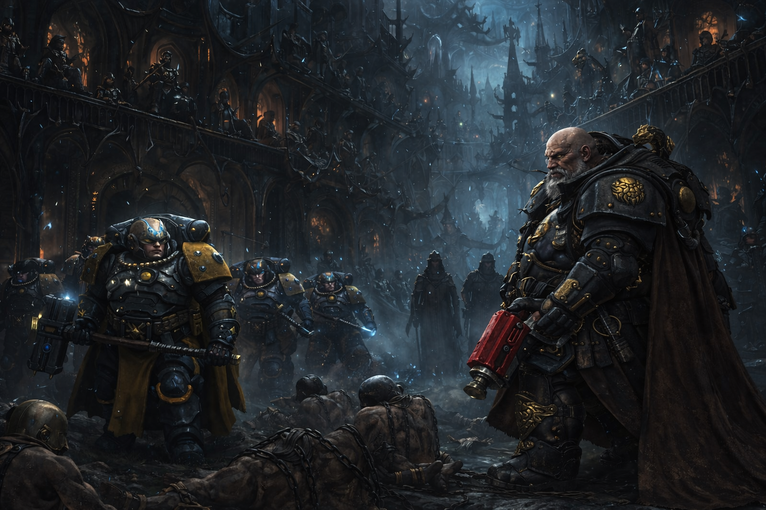 A Haemonculus drifted across a high span, pausing as if assessing workmanship.
