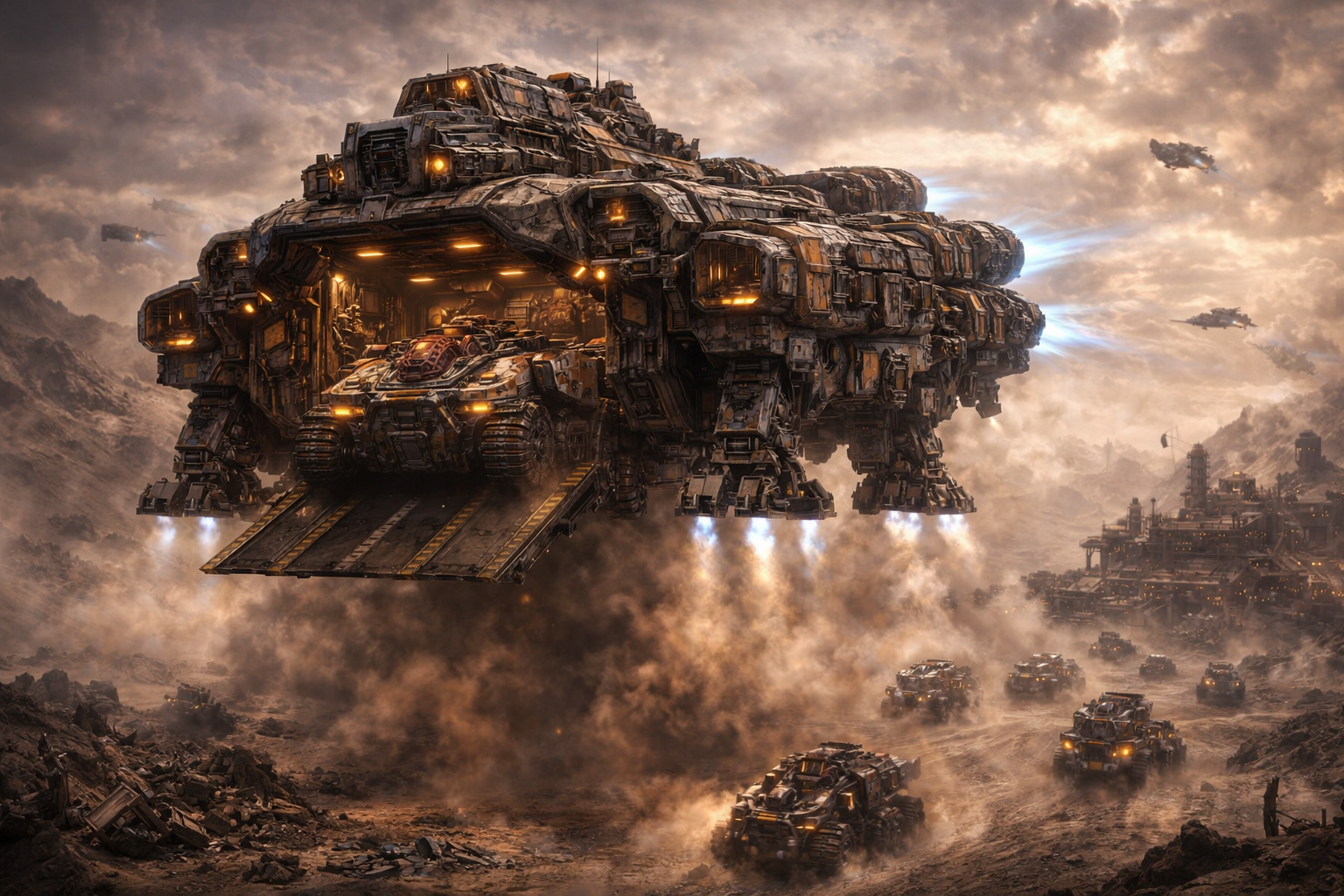 The Weight of the Ledger is capable of delivering a fully armored Kin strike force directly to the surface of a planet.