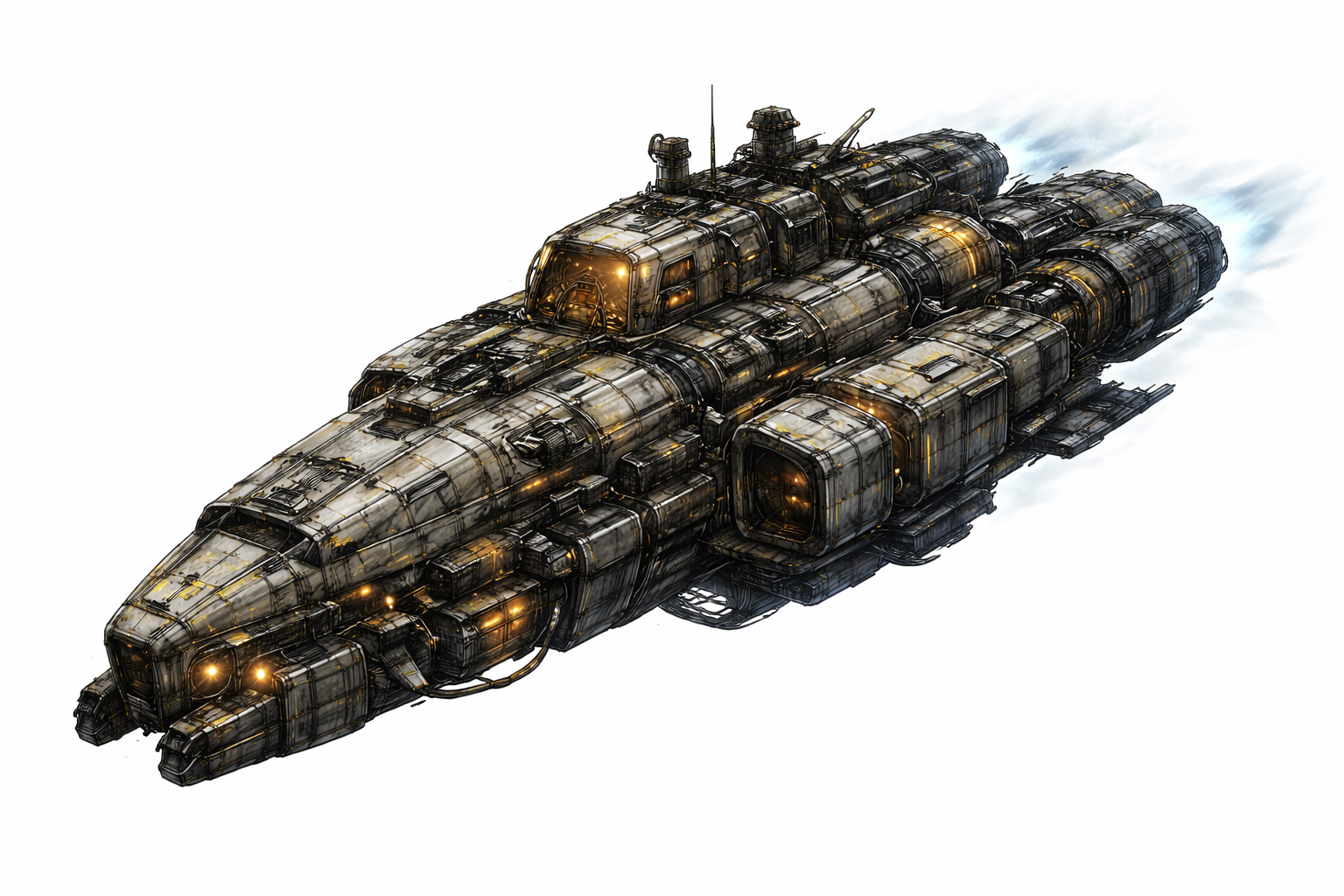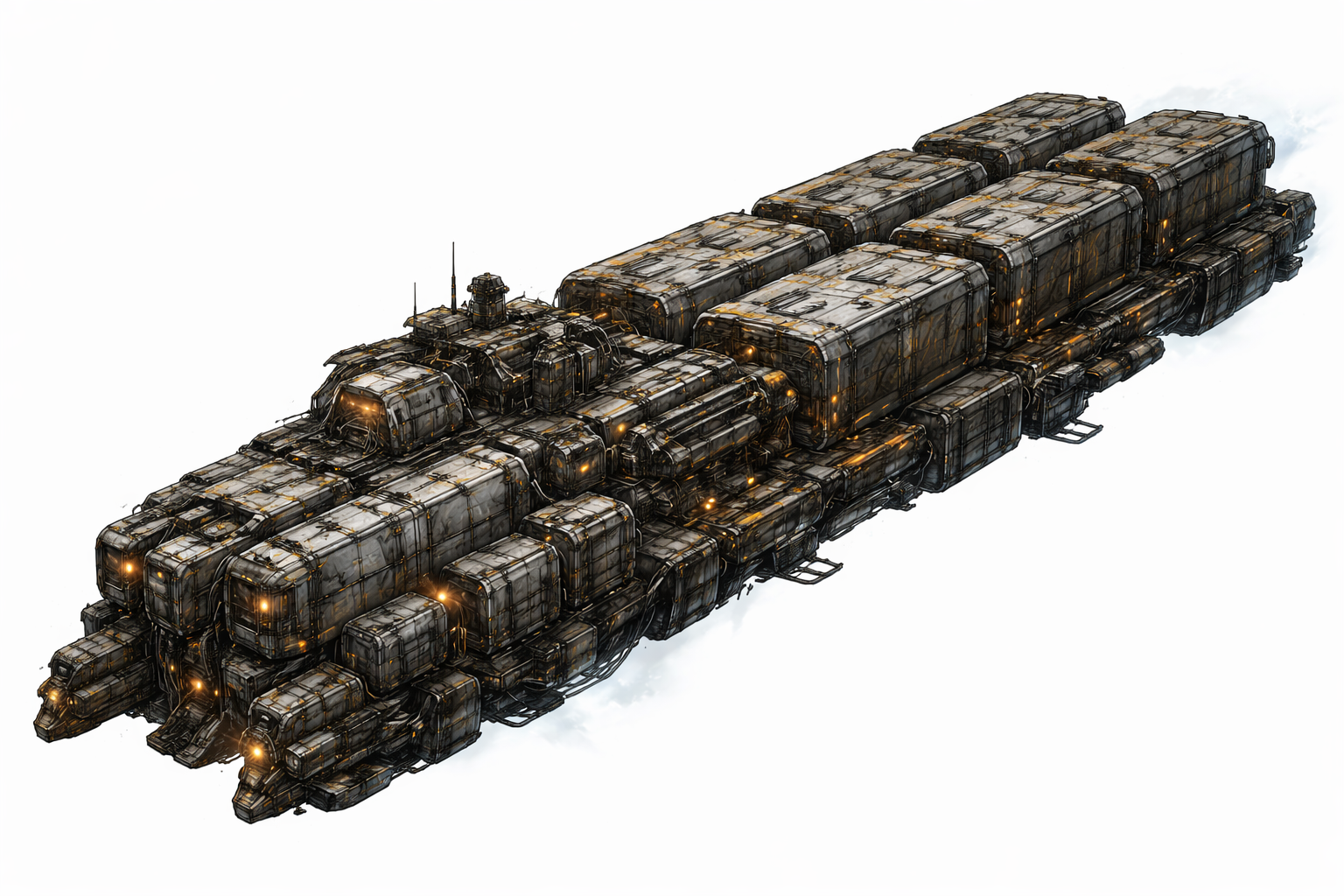 These ships carry massive quantities of structural material, processed ore, and industrial equipment between Vôrun Hold and nearby extraction zones.